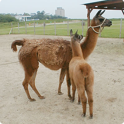 父は”マロン”、母は”プリン” です。 名前は、両親の名前の一部をもらったネーミングに加え、マリン=”海”を連想させ、瀬戸内海に臨む海浜公園で生まれ育つ好奇心旺盛な、ラマの赤ちゃんの伸び伸びとしたイメージにぴったりです!!