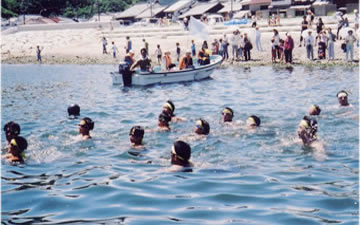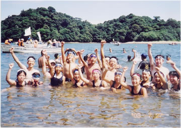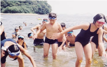 明治40年から続く伝統的行事である、坂越湾内の東之浜から天然記念物である生島間を今年の夏も坂越小学校6年生が挑戦しました。 この訓練は、明治40年に海洋運動会として開催されたのが始まりで、一時は中断があったものの昭和55年地域住民の要請もあって再開され約90年余り続いています。
